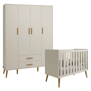 Berço Americano e Guarda Roupa Infantil 4 Portas Isis Areia Acetinado - Reller