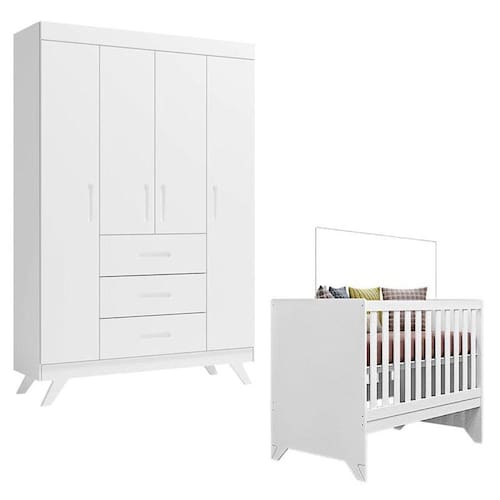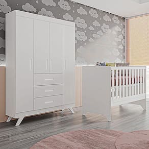Berço Americano e Guarda Roupa Retro Maya Branco Acetinado – Canaã