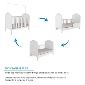 O Berço Americano Elô 3 em 1 é ideal para quem busca segurança, funcionalidade e estilo no quarto do bebê. Com estrutura em MDF e pintura UV atóxica, é certificado pelo INMETRO e segue o padrão americano. Versátil, pode ser utilizado como berço, mini cama ou mini sofá, acompanhando as fases da criança. Possui 3 regulagens de altura do estrado, bordas arredondadas e laqueadas, molduras das grades e quadro das cabeceiras em MDF, além de 4 rodízios (2 com trava) que facilitam a movimentação. Suporta até 40kg e acompanha suporte para mosquiteiro.