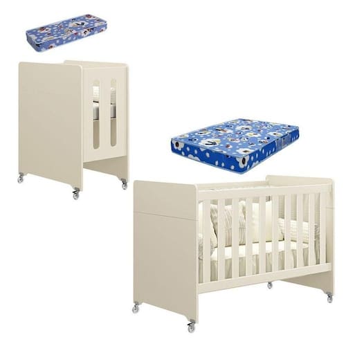 Berço Americano Evolution 4 em 1 Areia Acetinado com Colchão Mini e Colchão Americano Ortobom - Reller