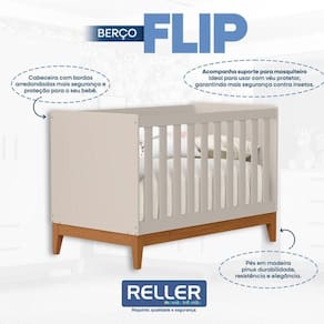 Berço Americano Flip Areia Acetinado com Colchão Ortobom - Reller