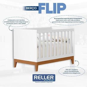Berço Americano Flip Branco Acetinado com Colchão Ortobom- Reller