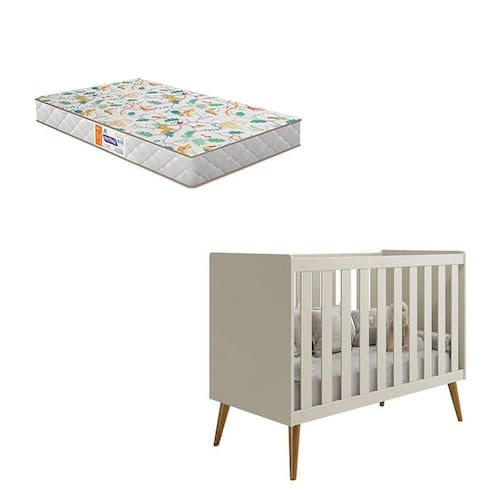 Berço Americano Isis Areia Acetinado com Colchão Gazin - Reller