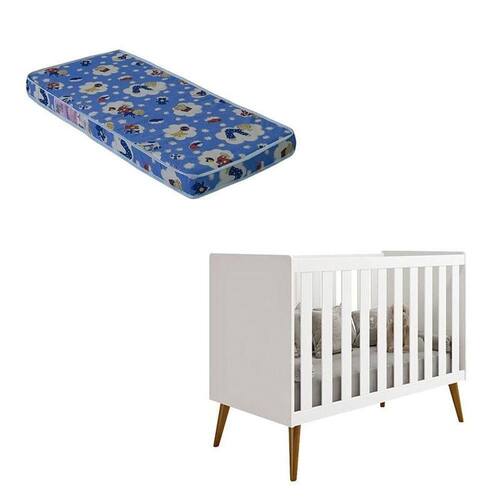 Berço Americano Isis Branco Acetinado com Colchão Ortobom - Reller