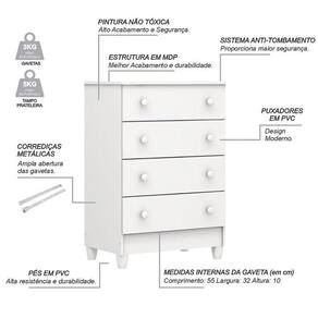 - Possui 04 Gavetas com corrediças metálicas