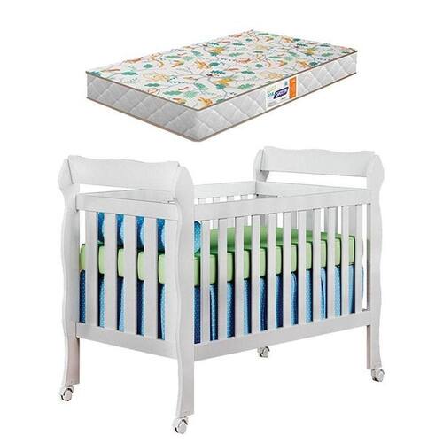 Berço Americano Lila Branco Brilho com Colchão Gazin - Carolina