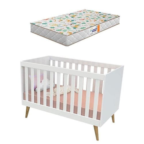 Berço Americano Ludmila Branco Bétula com Colchão Gazin Carolina