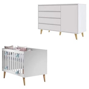 Berço Americano Ludmila e Cômoda Gran Lorena Branco Acetinado Bétula Carolina Baby