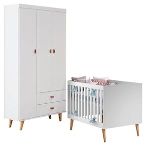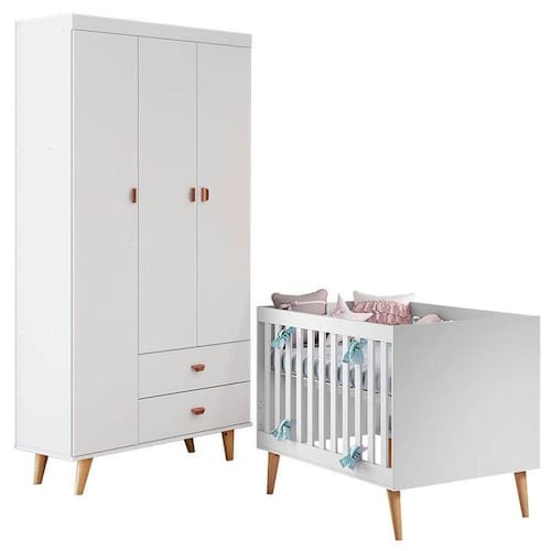 Os móveis para o quarto do bebê estão aqui! Apresentamos a vocês esse lindo conjunto composto por Berço Americano da linha Ludmila que se transforma em mini cama e sofá cama aumentando a vida útil do móvel acompanhando as fases de crescimento da criança, e o Guarda Roupa Infantil 3 Portas da linha Duda que conta com amplo espaço interno para maior praticidade e organização das roupinhas, sapatinhos e acessórios do bebê, possui sistema de Travas Anti-Tombamento fixados na parede para segurança de todos evitando acidentes, desenvolvidos pela Carolina Baby com todo amor, carinho e cuidado para esse momento tão especial da vida, conta um lindo design na cor Branco Acetinado proporcionando conforto, modernidade e tranquilidade ao ambiente com Pés estilo Retrô na cor Bétula, fabricado com materiais de alta qualidade, resistência e durabilidade sem deixar a delicadeza de lado. Confira abaixo as características, aproveite e garanta o seu!