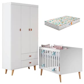 Berço Americano Ludmila e Guarda Roupa 3 Portas Duda Branco Acetinado Bétula com Colchão Gazin - Carolina
