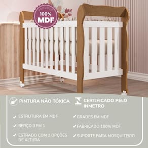 O Berço 3 em 1 foi desenvolvido para oferecer segurança, conforto e durabilidade desde os primeiros dias do bebê até a fase de transição para a mini cama. Fabricado em 100% MDF, com pintura UV atóxica e certificação do INMETRO, é a escolha ideal para pais que não abrem mão de qualidade e tranquilidade.