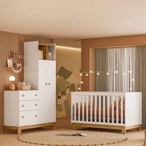 Começou a montar o quartinho do seu bebê? Aqui você encontra a opção ideal para que o quartinho fique aconchegante e moderno. O berço acompanha suporte de mosqueteiro e se transforma em mini cama aumentando a vida útil do produto. O guarda roupa cômoda da linha Slim possui 2 portas, 3 gavetas, 4 prateleiras bem distribuídas para melhor acomodar as roupinhas, sapatinhos e acessórios do seu bebê. Um móvel moderno e de excelente qualidade, com um design moderno. Venha aproveitar e garantir já o seu!