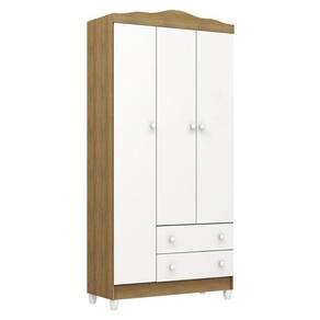 Guarda Roupa Infantil Mel Flat 3 Portas Branco Acetinado Amadeirado - Carolina