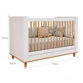 Características: Estrutura em MDF Acabamento em Pintura UV Padrão Americano Colchão recomendado: 130x70 cm Estrado regulável em duas alturas: 1ª 36,8 cm e 2ª 65,5 cm Grades fixas Pés em madeira maciça Certificado Inmetro 006291/2024 Não acompanha colchão