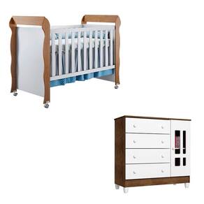 Berço Americano Mirelle e Cômoda Ariel Branco Acetinado Amadeirado - Carolina