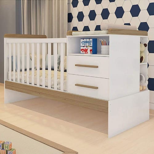 +Um+m%F3vel+para+acompanhar+o+crescimento+de+sua+crian%E7a%2C+aproveitando+melhor+seu+investimento.++Ainda+contando+com+beleza+e+praticidade+necess%E1rios+para+deixar+tudo+muito+bem+organizado.+O+ber%E7o+padr%E3o+americano+com+gavetas+e+trocador%2C+pode+ser+transformado+em+Cama+de+solterio+e+uma+escrivaninha+com+gavetas+ap%F3s+utilizado+como+ber%E7o.+Fabricado+em+100%25+MDF+com+pintura+at%F3xica%2C+com+bordas+arredondadas+e+laqueadas+para+maior+seguran%E7a.+As+gavetas+cont%E9m+corredi%E7as+met%E1licas+telesc%F3picas+e+os+puxadores+s%E3o+em+MDF+revestidos.+O+estrado+tem+2+op%E7%F5es+de+regulagem+de+altura+sendo+37%2C6cm+e+66%2C4cm+at%E9+o+ch%E3o.+Para+utiliza%E7%E3o+com+colch%E3o+quando+ber%E7o+70cm+x+130cm+e+quando+Cama+solteiro+78cm+x+188cm. Acabamento: Pintura UV Acabamento da Gaveta: Pintura Acabamento da Prateleira: Pintura Acompanha Cama Auxiliar: Não Acompanha Colchão: Não Acompanha Dossel: Não Acompanha Móbile: Não Acompanha Suporte para Mosquiteiro: Não Altura: 109,6 cm Altura do Estrado até o Chão: 66,40000000000001 cm Certificado: 004541/2019 Complexidade da Montagem: Alta: deve ser montado por um montador especializado Cor do Produto: Branco/Carvalho Escala de Brilho: Brilhante Escala de Brilho da Gaveta: Brilhante Escala de Brilho da Prateleira: Brilhante Espaço Entre as Barras das Grades: 5,8 cm Estilo: Moderno Estrado com Regulagem de Altura: Sim Estrado Regulável em Quantas Posições: 02 Gaveta com Chave: Não Itens Inclusos: 1 Berço 5 em 1, Manual de montagem e Acessórios Largura: 192,2 cm Linha ou Coleção: Uli Material da Gaveta: MDF Material da Grade: MDF Material da Prateleira: MDF Material do Estrado: MDF e Madeira Material Principal: MDF Montagem Flex: O berço padrão americano com gavetas e trocador, pode ser transformado em Cama de solterio e uma escrivaninha com gavetas após utilizado como berço. Multifunção Flex: Berço, Trocador, Cama Solteiro, Escrivaninha e Gaveteiro Necessita Montagem: Sim Opções de Altura do Estrado: 37,6cm - 66,4cm Permite a Utilização de Cama Auxiliar: Sim Peso: 83,5 kg Peso Máximo por Gaveta: 7 kg Peso Máximo por Prateleira: 15 kg Pintura Atóxica: Sim Possui Gavetas: 02 Possui Pés: Não Possui Portas: Não Possui Prateleiras: 02 Possui Rodízio: Não Profundidade: 86,90000000000001 cm Recomendações de Uso, Manutenção e Limpeza: Limpar com um pano levemente umidecido Sapatas Niveladoras: Não Sistema Anti-Refluxo: Não Sistema de Montagem: Parafusos auto atarraxantes, roscas métricas, porcas metálicas, chapas metálicas, buchas plásticas, minifix, cavilhas de madeira. Suporta Até (kg): 90 kg Tamanho do Colchão Indicado (L x C): Berço 70cm x 130cm. Quando transformado em cama 78cm x 188cm Tipo de Corrediça da Gaveta: Metálica Telescópica Tipo de Estrado: Fixo Tipo de Grade: Fixa Tipo de Puxador da Gaveta: Externo