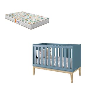 MDFBerço Americano New Classic Azul com Pés Madeira Natural e Colchão Gazin Reller