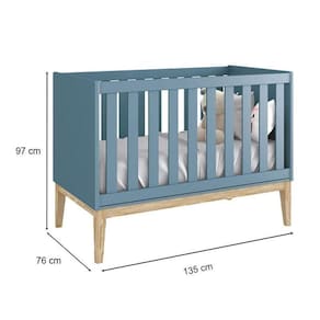 Berço Americano New Classic Azul com Pés Madeira Natural Reller
