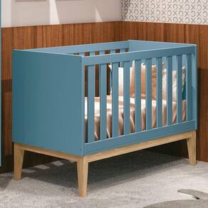 Berço Americano New Classic Azul com Pés Madeira Natural Reller