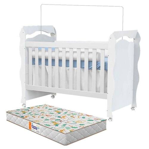 Berço Americano New Nanda Branco Brilho com Colchão Gazin - Carolina Móveis