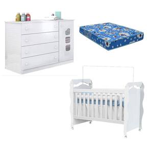 Berço Americano New Nanda com Cômoda Lívia Branco Brilho e Colchão Ortobom – Phoenix