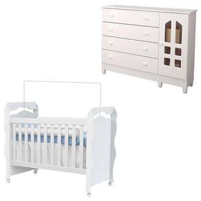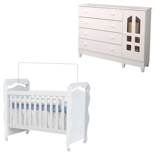 Berço Americano New Nanda e Cômoda Gran Selena Branco Brilho – Carolina