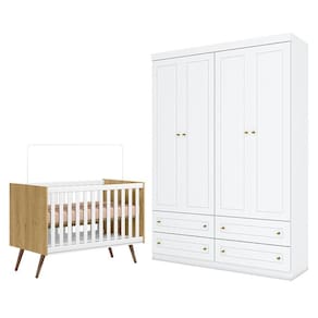 Berço Americano Q Encanto 3820 Retrô Freijó TOQ Branco Acetinado - Qmovi e Guarda Roupa Infantil Americano 4 Porta Branco HP - Henn