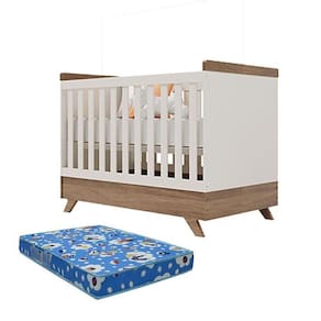 Berço Americano Retro Vitória Off White Carvalho com Colchão Ortobom Canaã
