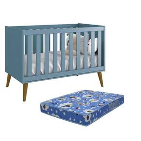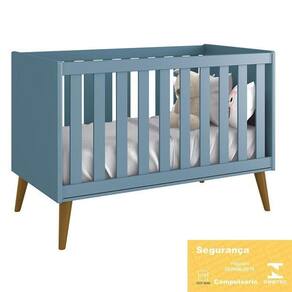 Berço Americano Theo Azul Fosco Pés Amadeirado Com Colchão D18 - Reller Móveis Azul Fosco Berço Americano Theo Pés Amadeirado com Colchão D18 - Reller Móveis O Berço Americano Theo conta com design moderno e pés retrô deixando o quartinho charmoso e sofisticado. Acompanha o desenvolvimento do bebê se transformando em uma linda mini cama. Já o Colchão Baby Physical da Ortobom vai garantir noites mais confortáveis e tranquilas que toda mamãe busca para seu filho. Berço Americano Theo - Reller Móveis - Certificado pelo INMETRO - Transforma-se em mini cama - Padrão Americano - Cantos arredondados - 03 regulagens de altura do estrado - Estrado em MDF - Grade Fixa - Colchão Recomendado: 130x70 cm - Acabamento UV (Atóxico) - Espaçamento da grade: 5,9 cm - Pés desenvolvidos em madeira maciça