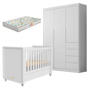 Berço Americano Tutto New e Guarda Roupa Infantil Eloá Branco Acetinado com Colchão Gazin Phoenix Baby
