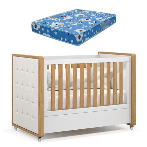 Berço Americano Tutto New Freijó Branco Acetinado com Capitonê New Boucle e Colchão Ortobom - Matic