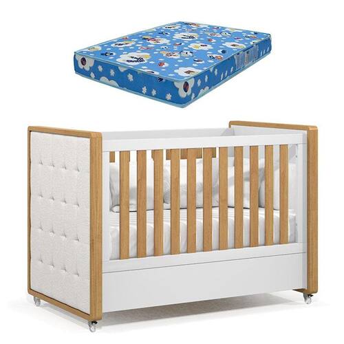 Berço Americano Tutto New Freijó Branco Acetinado com Capitonê New Boucle e Colchão Ortobom - Matic