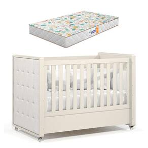 Berço Americano Tutto New Off White com Capitonê New Boucle e Colchão Gazin - Matic