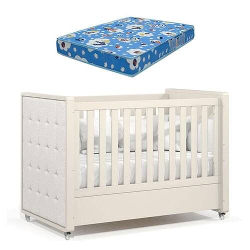 Berço Americano Tutto New Off White com Capitonê New Boucle e Colchão Ortobom - Matic