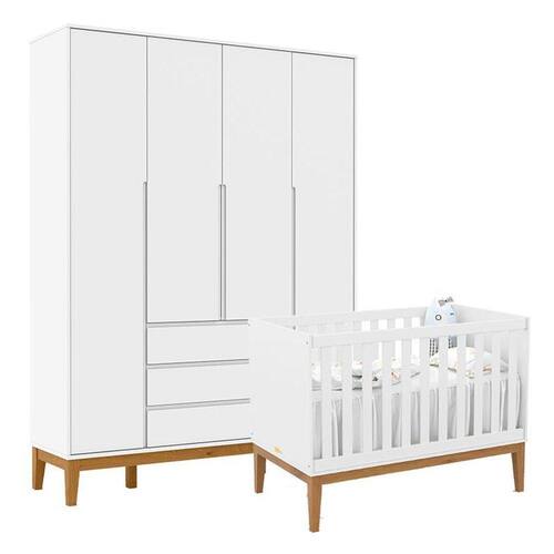 Berço Americano Unique e Guarda Roupa 4 Portas Nature Clean Branco Soft Eco Wood – Matic