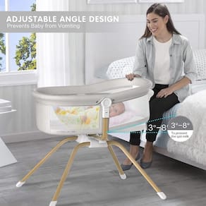 - ?Ângulo de inclinação ajustável do colchão?: O berço para bebês é possível levantar suavemente o colchão sob as costas do bebê para facilitar a respiração caso ele arrote ou em caso de infecções do trato respiratório superior.