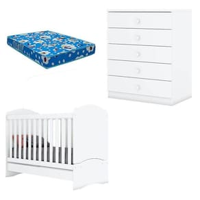 Berço Bala de Menta e Cômoda Infantil Bala de Menta Branco com Colchão Ortobom Henn
