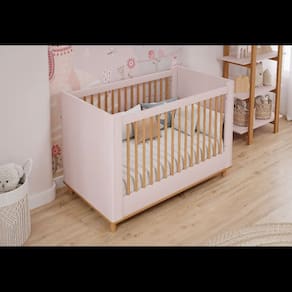 Berço cupcake 100% MDF com 2 grades fixas com Palitos de Madeira, Pés torneados de madeira, Cantos arredondados, Acabamento em pintura UV.