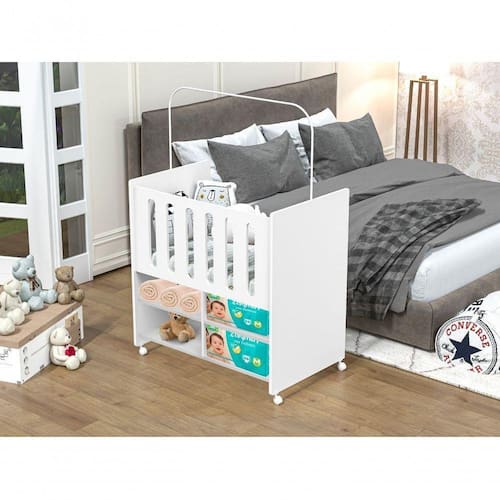 Berço Bebe Moises Fofura Branco Mdf C/Colchão Porta Fraldas