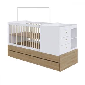 O(a) Berço Bebê Multifuncional 3 Gavetas com Cama Auxiliar Aveiro Oak/Branco - Completa Móveis  é produzido em MDP na escala de brilho Fosco, e possui um grau de dificuldade de montagem: Médio.
