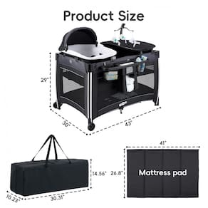 Berço Cercado multifuncional para bebês Os berços versáteis Pamo Babe atendem às suas muitas necessidades e acompanham o crescimento do seu filho. Parque de viagem multifuncional para bebês, combinado com berço, trocador, brinquedos fofos e centro de atividades.