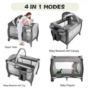 PLAYARD MULTIFUNCIONAL: A luxuosa creche de retiro testemunhará o crescimento do seu filho. Os pais podem facilmente trocar fraldas para recém nascidos no trocador sem se curvar. À medida que o seu filho cresce, o berço infantil de tamanho grande oferece mais espaço para o seu bebê descansar e dormir. As crianças podem subir ou caminhar alegremente no pátio de recreação. PROJETO DE VIAGEM PORTÁTIL: O berço de viagem também inclui uma bolsa de transporte, adequada para viagens em família ou visitas de amigos. Pode ser em ambientes internos e externos. As duas rodas deslizam suave e silenciosamente sem danificar o chão. Em pé, as rodas podem ser travadas com um clique. O organizador de fraldas pode ser para guardar as necessidades diárias do seu bebê. ESPAÇO DIVERTIDO E ESPAÇOSO: O design de malha de quatro lados garante a circulação de ar e é conveniente para os pais observarem seu bebê. O tecido Oxford é confortável e respirável. Colchão removível é macio e protege a coluna do bebê. O dossel ajustável vem com lindos brinquedos giratórios para entreter o bebê e atrair sua atenção. ESTRUTURA SEGURA E ESTÁVEL: O tubo de ferro sólido dá ao bebê um suporte estável. O envoltório de tecido grosso e os cantos elegantes à prova de choque ao redor mantêm as crianças longe de colisões acidentais. A mesa de fraldas também está equipada com cintos de segurança. SIMPLES DE MONTAR E DOBRAR: Leia atentamente nossas instruções antes de montar e dobrar o pack n play. A montagem e desmontagem não necessita de ferramentas. O pano TD de alta resistência é adequado para dobras múltiplas. É uma ótima opção para chás de bebê, presentes de aniversário, Natal e outros feriados