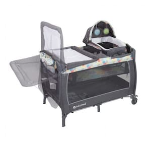 Berço Cercado Portátil com Dossel e 2 Brinquedos de Pelúcia, Baby Trend Funfetti, Preto