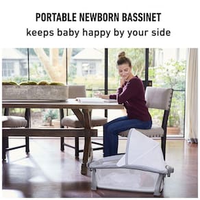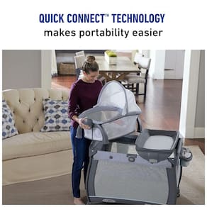 Graças à tecnologia Quick Connect, os acessórios são removidos rapidamente do playard para facilitar o transporte pela casa e embalar sem esforço O berço portátil cria um local aconchegante para o bebê dormir enquanto você se movimenta pela casa A estação de troca de fraldas limpa pode ser removida do playard com uma etapa rápida para facilitar a embalagem do playard O berço portátil tem laterais de malha completa para visibilidade e respirabilidade O organizador de zenamento integrado mantém lenços umedecidos, fraldas e outros itens essenciais para troca ao seu alcance