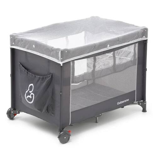 O berço dobrável Triton também conta com tela mosquiteiro para proteger o bebê. O bolso lateral ajuda e facilita a vida da mamãe.