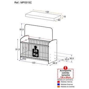 O Berço com Colchão Incluso Ana Lívia Multimóveis MP0515C é produzido em MDP, que garante maior durabilidade e resistência, e possui acabamento acetinado (cerca de 20% de brilho). O berço é padrão nacional (tamanho do colchão 1,30 x 0,60), possui grade fixa, 3 regulagens de altura para o colchão e acompanha suporte para mosquiteiro, que garante noites mais tranquilas de sono para o bebê. O colchão possui estrutura em espuma e tecido poliéster. De conforto macio, possui tratamento anti-ácaro e anti-alérgico e é indicado para até 50kg. Berço certificado pelo INMETRO sob o Selo n 001073/2017.
