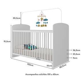 Berço - Altura: 91,5cm | Largura: 132,5cm | Profundidade: 68,5cm