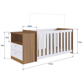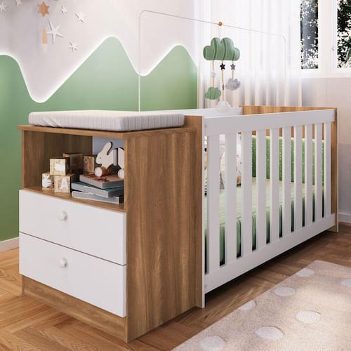 O(a) Berço com Cômoda Aconchego 2 Gavetas Nogal Manchester/Branco – Completa Móveis é produzido em MDP na escala de brilho Fosco, e possui um grau de dificuldade de montagem: Médio.
