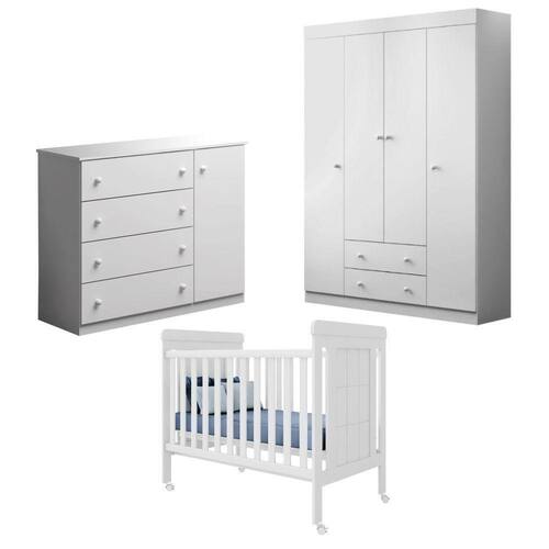 Berço Com Cômoda E Guarda Roupa Clarice Branco