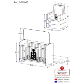Dimensões do produto montado: Berço - Altura: 91,5cm | Largura: 133cm | Profundidade: 68,5cm Poltrona - Altura: 90cm | Largura: 65cm | Profundidade: 64cm *Você pode consultar as medidas detalhadas na imagem técnica do produto.